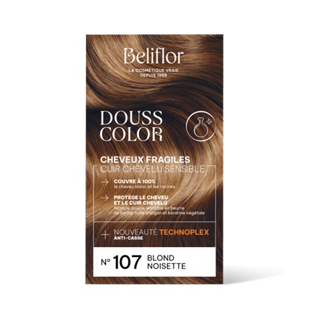La gamme DoussColor de Beliflor a été spécialement conçue pour les cuirs chevelus sensibles et les cheveux fragilisés. Cette coloration n'en est pas pour le moins intense et couvre parfaitement le cheveu blanc.